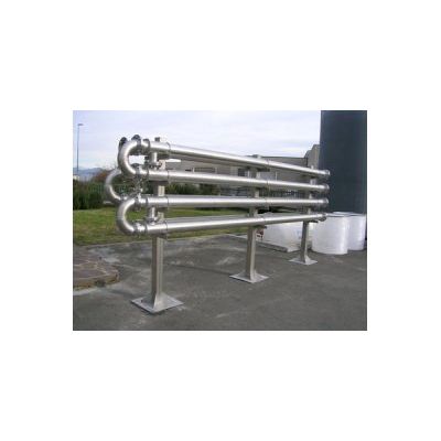 Heat exchangers are used for heating sludge before its recirculation into anaerobic digesters. The basic heat exchanger is a pair of concentric tubes; sludge flows through the smaller center tube, while water flows (in counterflow) in the annular space formed by the outside of the smaller pipe and the inside of the larger pipe. To increase capacity, a number of these pairs are connected together until their combined size provides the needed capacity. Return bends connect the inner tubes and short sections of pipe connect the outer jackets. Heat exchanger is supplied with supporting steel frame and, as an option, with concentric insulation layer.