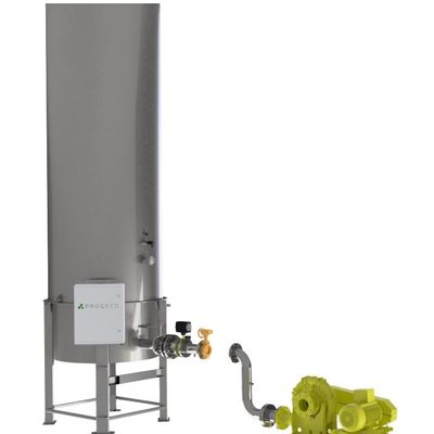 Biogas from anaerobic digestion is saturated with water vapour that has a significant negative impact on the performance of energy recovery units. Removal of moisture is achieved by means of cooling down the biogas flow so that moisture turns into condensate water that can be easily separated, collected and discharged. The system is based on an air-cooled fully automatic water chiller and a water/biogas heat exchanger. The two units are connected by a recirculating water+glicole hydraulic circuit. Condensate water separated in the heat exchanger is collected inside a knock-out drum from which is automatically disposed. The system is designed as package unit; chiller is supplied separately, for installation in non-hazardous area.