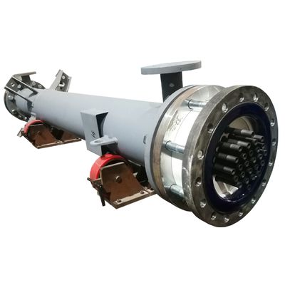 This standard silicon carbide heat exchanger is designed as a shell and tube heat exchanger using corrosion-resistant tube plates and silicon carbide (SiC) tubes. Its advanced materials cater to demanding requirements in heating, cooling, and condensation tasks involving highly corrosive chemicals. The SiC heat exchanger is suitable for applications in the chemical and pharmaceutical industries, offering excellent corrosion protection and a prolonged operational lifespan. Its construction enables the implementation of a double-tube plate design, effectively separating the process fluid from the working fluid, thus mitigating the risk of mingling even if O-rings fail.