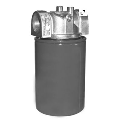 Spin-on with full-ported die-cast aluminum head for minimal pressure drop. Standard 3/4” NPTF porting. Spin-on thread = 1.00-12UN-2B. Visual gauge alarm for dirt monitoring. Small profile for use in limited space. 6” element length. Includes one 10-micron element (standard). 25 micron also available.