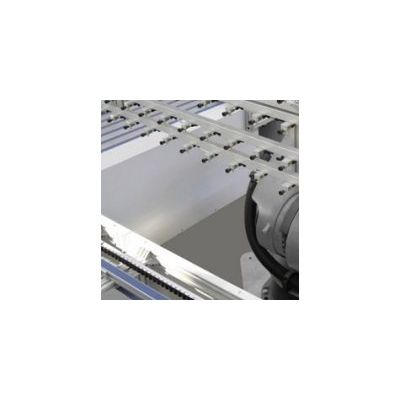 GE200AR is a stetion that deposition second encapsulation sheet and the back layer (backsheet or glass) is handled by a special robotized cell extremely flexible and versatile in application of film and protective layers which complete the sandwich before the lamination step. Particular attention was paid to the film punching and the extraction of terminals through appropriate tools. Again the replacement operations of raw materials can be performed without any process interruption. The change of format is completely automated. The high reliability, the fine positioning accuracy and the low maintenance are finally important factors that increase the performance of equipment and provide a product with high quality standards.