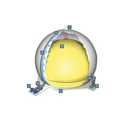 The 3/4-spherical gas holder represents the traditional stand-alone external vessel with many volume choices of gas storage at high pressures.