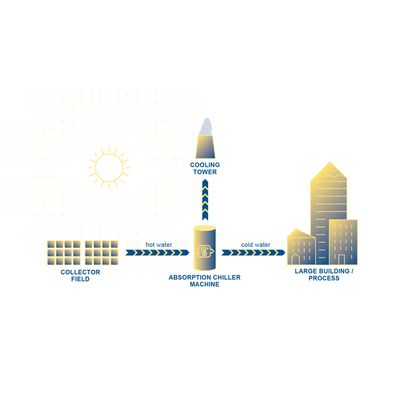 Large buildings, especially in sunbelt countries, have significant space cooling demands and also demands for cooling e.g. of server rooms. Solar thermal systems can help to cover these cooling demands very efficiently by use of absorption chiller machines. The shading of roofs by the large scale solar thermal collectors is an additional benefit as this avoids partly heating of the building.
