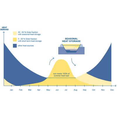 BigSolar makes a significant contribution to the heat transition. High solar fractions up to 50 % for cities with a dis-trict heating grid. BigSolar is a smart combination of large-scale solar thermal collectors, a seasonal thermal energy storage and absorption heat pumps. An intelligent control engineering of these advanced hybrid generation technologies reflects SOLID’s knowledge and expertise. A holistic approach, economically competitive for a long-term substitution of fossil fuel, saving GHG emissions, peak load management and waste heat integration.