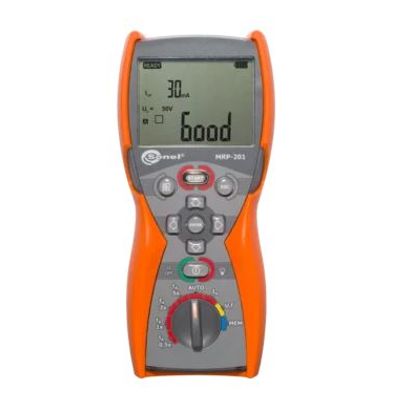 The Sonel MRP-201 residual current circuit breaker meter is a specialist device for measuring all types of residual current circuit breakers - direct, short-delay, selective; types AC, A and B. It allows to measure tripping current, tripping time depending on differential current, resistance of protective conductor and contact voltage. Measurements can be performed individually or in series in automatic modes (all preset measurements for a given waveform or for all waveforms); simultaneous measurement of current and tripping time is also possible (with one RCD trip).