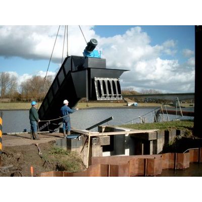 The Spaans Babcock Screw Turbine is probably the most efficient technology for low head hydropower sites. Unique is the fish friendliness, long lifetime and minimal operating costs. Spaans Babcock offers grid connected, off-grid and hybrid systems. The Screw Turbine is a further development of the Screw Pump. Whereas the Screw Pump pumps the water up, in the Screw Turbine the water flows down. The Turbine rotates due to the flow of the water and energy is transferred to the drive unit. The generated energy is transformed by a generator into electricity. A single Screw Turbine can produce up to around 500 kW and a number of Screw Turbines can be placed parallel or in series. Project sizes typically vary between 50 and 2000 kW. Spaans Babcock can offer the full solution, including gates, screens, remote monitoring and control and after-sales and spares supply.