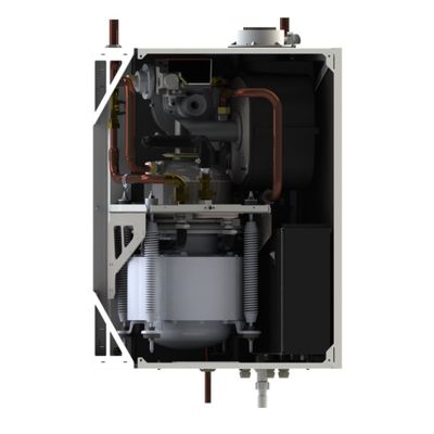 The mCHP Generator system allows customers seeking to use Natural Gas or Propane as a fuel source to take advantage of the 1 kW of electricity and 6 kW (20,500 BTU’s) of thermal energy offered by the Microgen Stirling Engine. The mCHP Generator is your solution to on-site power and heat generation using clean burning natural gas. On-site power generations means that the there are no losses of electricity due to transmission and distribution like there are in electrical generation at large power plants. What’s more, the mCHP Generatoris 95% efficient, meaning you get more bang for your buck while producing up to 86% less CO2 per electrical unit than those homes without the mCHP Generator.