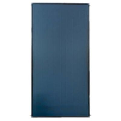 Flat solar collector BLUh - BLUhx model EN 12975, CE, Solar Keymark, itwTSZ certificated and with following characteristics: gray painted aluminum section case with 50 mm rock wool thermal insulation. Solar plate with 22 mm diameter pipes absorber plate with highly selective titanium treatment and laser welding. Low iron, tempered glass.