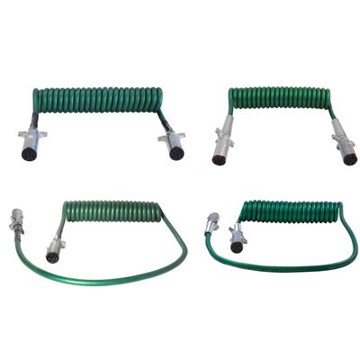 All with Die-cast plugs, Premium quality assemblies designed for the demands of modern ABS equipped trailers and for multiple-trailer configurations, Extremely flexible, even in brutally cold conditions as low as -85°F (-65°C), High strand count copper conductors with machine crimped brass terminals for dependable electrical connections, Abrasion resistant outer jacket is highly resistant to UV rays and commonly encountered chemicals such as diesel fuel and hydraulic oil, Die-cast SAE J560 Buffalo Plugs with heavy duty double gusseted handles , All plugs are factory injected with grease for easy installation and corrosion resistance, Excellent coil memory meets or exceeds SAE J2222 performance standards, Available with spring guards or Tectran`s unique WeatherSeal™