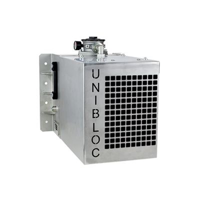 The Unibloc transport oil cooler is a safe, robust centrifugal fan designed for maximum performance during the long haul. Our cooler better protects against road vibrations and heat dissipation up to 17.5 HP (13 mW) at 60-degree temperature rise. It’s capable of a system pressure of 315 bar (4570 psi) and suitable for systems where piston pumps are required. Reinforced L-style brackets ensure the strongest cooler design in the market.
