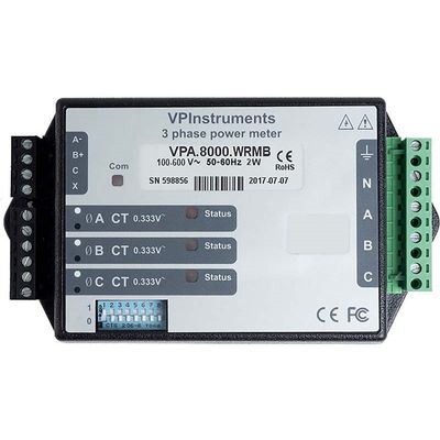 The VPInstruments 3 Phase Power Meter is the highly accurate power meter for your permanent power measurements. With the power meter you can measure the voltage and current of all three phases. Get the complete picture as the sensor provides power, voltage, current, cos(phi) and many more electrical parameters. Via the RS485 (Modbus RTU) interface you can connect the 3 Phase Power Meter to any building or energy management system for your readout and further analysis.
