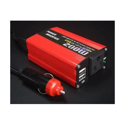 200W car power inverter Technical specifications; Product:200W car power inverter. Used:in-car use. notebook laptop,Tablet pc DVD player, digital camera, etc. Input voltage range: DC 12V. Output voltage: AC 220V±10% . Output frequency: 50HZ(47-55HZ). Input Current: 8.3A. Output Current:0.45A. Output waveform: Modified sine wave. Over heat protection: 65?. Low Battery cut off : 10v. High Battery cut off:15v. Unload current: Less than 0.4A . Conversion efficiency:>85%. Continues AC Output Power: 200W. Peak Power: 400W. USB:one. Product size : 8.7*6.4*3.8cm.