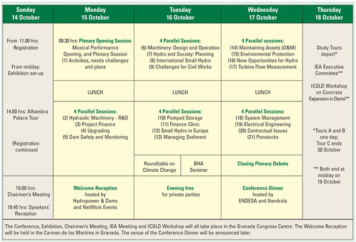 The greatest number of participants are developers, owners and operators. Also strongly represented are: planners, consultants, contractors, financiers, researchers, academic institutes, professional associations (national and international), manufacturers and suppliers. Last year, more than half of the 68 nations represented were African and Asian countries, with major development programmes in progress or ahead. This year a record number of abstracts were submitted for the programme, and it is already clear that many more countries will join us this year in Granada. If you are involved in the development or operation of large or small hydro or pumped-storage schemes, or dams for all purposes, you should plan to attend.