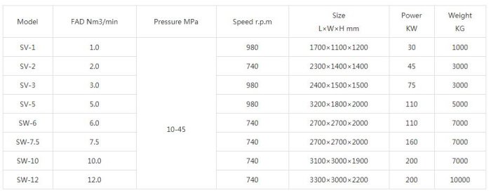 Shangzhen - Model SV~SW -100-400bar High Pressure Air Compressor 1-12m3/min