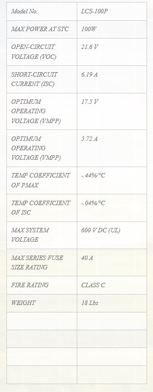 Light Catcher - Model LCS-100P -100W 12V Polycrystalline Module