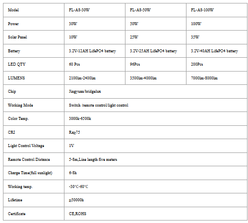 Felicity Solar - Model FL-A8-100W -100w Motion Sensor Rechargeable Led Solar Floodlight