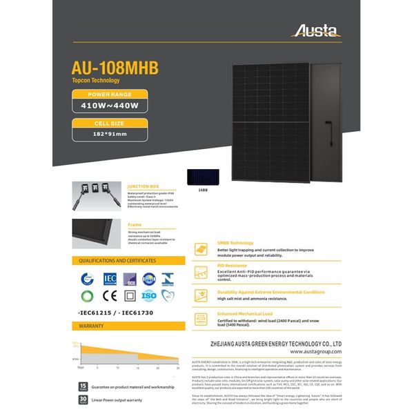 Austa - Model AU-108MHB - 108 String All Black Mono Half Solar Module