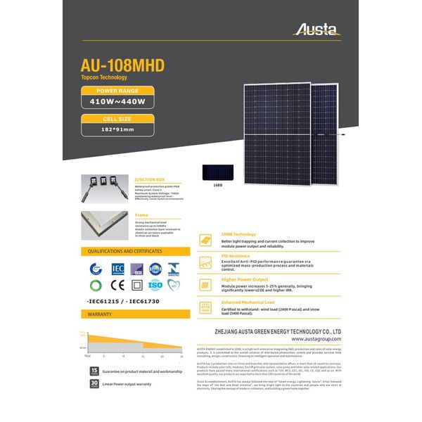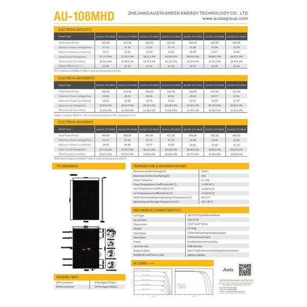 Austa - Model AU-108MHD - 108 String Double Glass Mono Half Solar Module