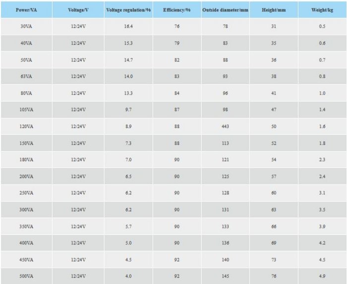 Rated power: 20VA-500VA. Degree of Protection: IP00. Materials: 100% copper wire. Insulation class: Class-A, Class-B. Insulation strength: 3.75KV Rms. Ambient temp.(t)-40℃. Primary: 120V/60Hz, 230V/50Hz. Secondary: 0-36V. Customer Design Avaiable. Standards compliant: CE EN61558-2-6 UL5085-2 #File E337575 CUL CSA22.2#66.1 66.2.