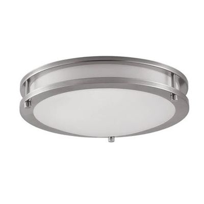 LED 12" Ceiling Light - 16W - 1,260LM - 4000K - 120V. 12” Indoor Round LED Ceiling Light W/Brushed Nickel Double Rings & Frosted Plastic Lens. This Euri Lighting LED ceiling light features bands of brushed nickel and a frosted lens, creating a contemporary and clean design. Versatile and modern, this 12” round ceiling light is dimmable and available in welcoming Bright White (4000K). Eliminate maintenance troubles and reduce energy costs with this eco-friendly LED ceiling light.