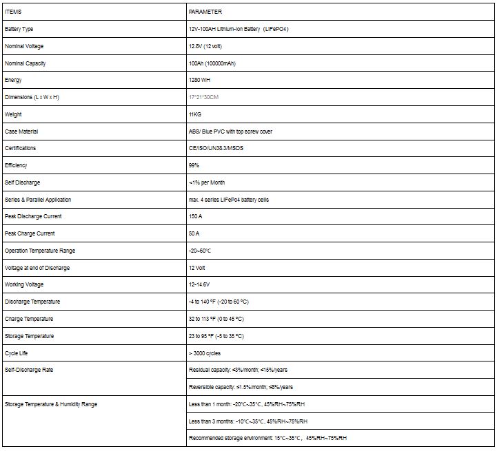 Voltage and Capacity: Make sure the battery voltage and capacity match the requirements of your system. A 12V 100Ah battery is suitable for systems that require 12V power and a capacity of up to 100Ah.
