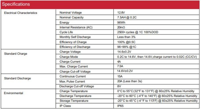 Canbat - Model CLI7.5-12 -12V 7.5AH Lithium Iron Phosphate Battery - LiFePO4