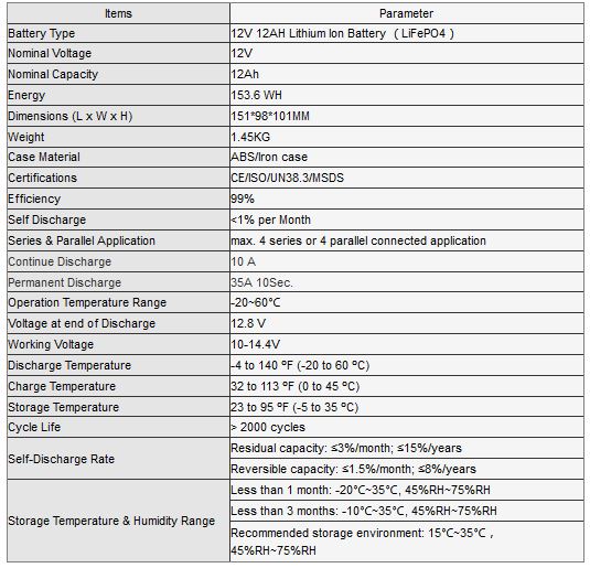 BSLBATT 12V 12Ah Lithium Ion Battery has 12 volts and a 12Ah capacity and is perfect for powering your deep cycle systems. BSLBATT 12V 12Ah Lithium Ion Battery has an internal microprocessor controlled battery management system (BMS) that monitors the key operational parameters during charging and discharging, such as voltages, currents and internal temperatures. Ionic Batteries can be hooked up four in series and as many needed in parallel.