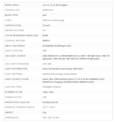 - Leled - Model RGBW- LE-UWF180 - 12W ...