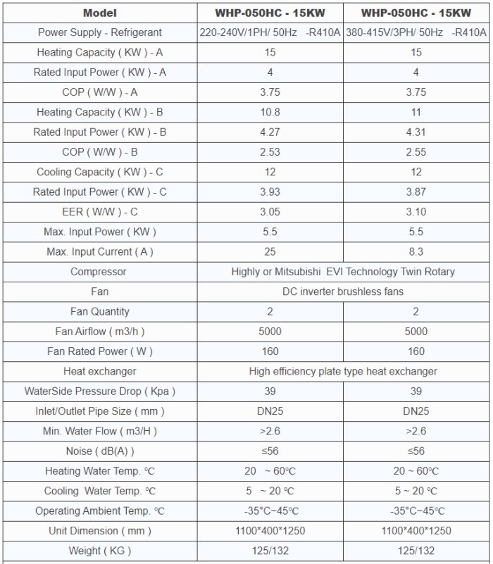 Imposol - Model WHP-050HC -15KW Inverter& EVI Air Source ( Ultra-Low Ambient Temp.) Heat Pump