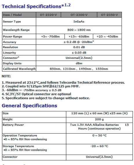 - Wide band calibrated wavelength with 850nm?1310nm ?1490nm and 1550nm