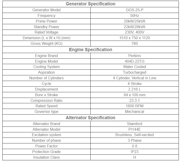 - Product Name: 25kVA Diesel Generator