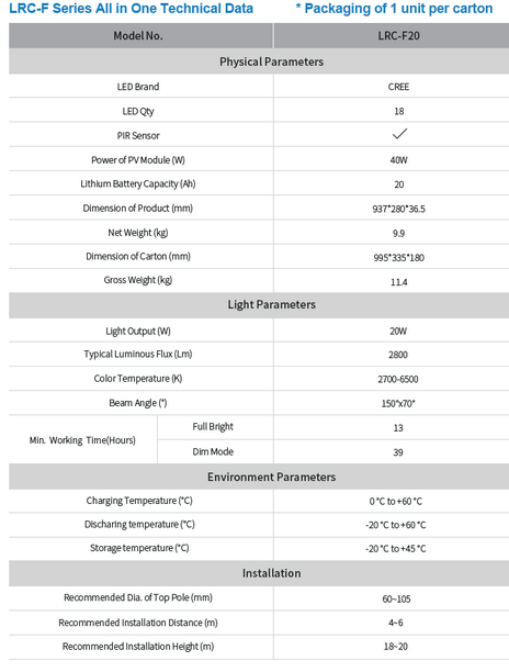 Leadray-Optoelectronic - Model LRF-20W -20W All in One Solar Street Lights