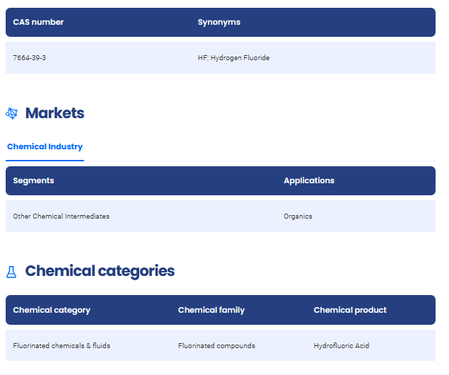 Hydrogen fluoride* (HF) is used in the chemical industry, the petrochemical industry and for nuclear technology.Hydrogen fluoride is used in the the following applications:Chemical industry: for manufacturing of organic and inorganic fluorine compounds Petrochemical industry: as catalyst for manufacturing of high octane gasoline (alkylation) Nuclear technology: for manufacturing and reprocessing of fuel elements*Goods labelled as “dual use” are subject to special controls and export restrictions in most countries. Before exporting such goods the exporter must apply for an appropriate export licence from the competent authority. For deliveries within the EU, for example, the seller must include an appropriate note in the commercial papers in accordance with article 22, paragraph 10, of the dual use regulation.