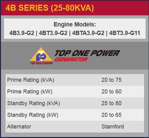 DCEC Cummins - Model 4B Series (25-80kVA) -25-275kVA Diesel Engine