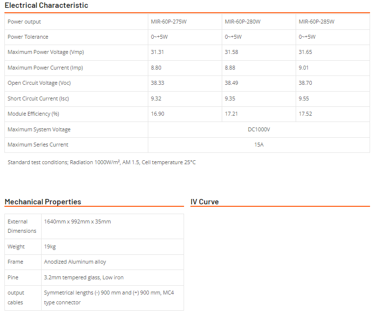 - Mirsolar - Model MIR-P60 - 275 Watt ...