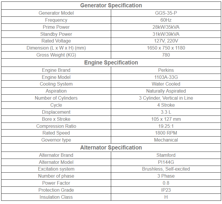 - Product Name: 28kW 35kVA Diesel Generator