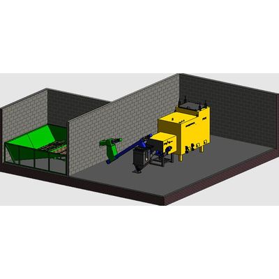 This modular walking floor has a size of 2 x 2 m. It is equipped with one bar. The maximum fuel storage size is approx. 20 m3. The side walls can be built sloping, but the maximum angle of incline is 40 degrees. Two of the walls must always be vertical to prevent bridging of the fuel.