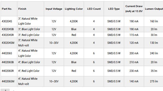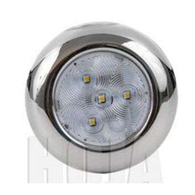 Highly polished 304 stainless steel housing, surface mount with mounting screws hidden; ideal for interior use in boat, RV and caravan, truck/trailer etc. as ceiling light, courtesy light and other applications. Clear PC lens, engineered lens optics distributes a uniform and cozy light beam illuminating from LEDs, beam angle=120°. SMD LEDs of 0.5W superior grade, long life span up to 50,000 hours. Lighting color available in Natural White(CCT=4,000~4,500K), Blue or Red; also available in dual color by special order. Circuit board conformal coated to resist moisture and corrosion. Rated for 12V, tested to 13.8V. Also available in multi-voltage 10~30V operating range, or 24V version by special order.