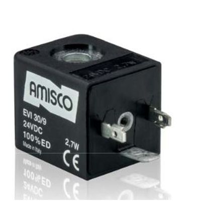 The EVI 30 system by Amisco includes a wide range of 30mm coils, designed for pneumatic applications. This coil family is available for tubes with 8, 9 and 10mm diameter.. The coils are available with different voltages and connections: types, power and other features are described in the following pages.