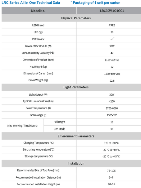 - Lighting Time(30% saving mode): 39 hours (3~5 rainy days)