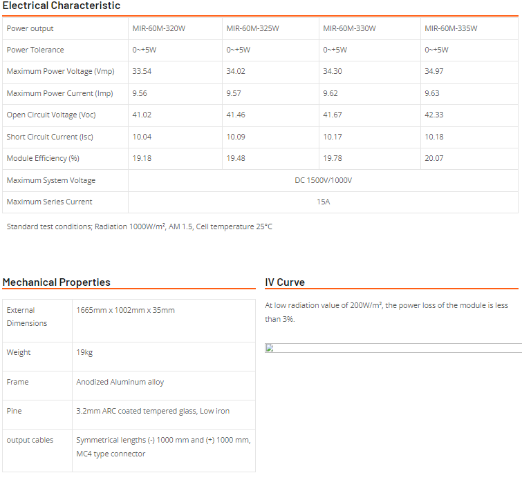 - Mirsolar - Model MIR-M60 - 325 Watt ...