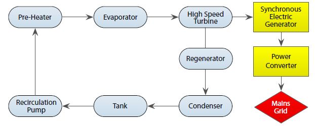 - Recirculation pump to pump the fluid back in the ORC loop;