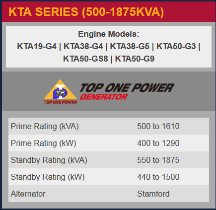 Cummins - Model KTA & VTA Series -450-2500kVA G-Drive Diesel Engine