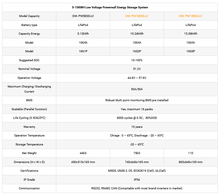 Dawnice - Model DW- PW5ESS-L -48V 100Ah 5KWH Solar Power Wall Home Lithium Ion Batteries