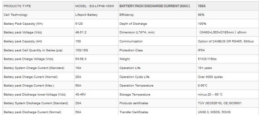 Powerwall - Model LiFePO4 - EG-LFP48-100W -48V 100Ah Power Wall Lithium Ion Home Battery ESS Battery 5kWh