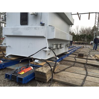 500 ton capacity sliding system available for sale. The PS-500 Power Slide System is used for pushing heavy loads from one location to another. Most commonly these systems are used for trans-loading transformers from railcars to hydraulic modular trailers for transport and then trans-loading from the modular trailers to the transformer installation pad. It is safe and efficient when cranes are not an option for lifting and setting. 15' Track sections, 4x Slide shoes, 2x 55 ton push cylinders, graphite sliding, connections and pins. Synchronous hydraulic power units and hoses can be sized and supplied upon request. Various track and shoe lengths are also available. www.KitchensEquipment.com Contact: Eddy Kitchen @ 1-804-814-4844 Each unit includes: 115 feet of slide track Four slide shoes with load pins Two push cylinders per system Connecting links with pins One gallon of graphite Operations manual Painted to color Two safety load stopsMost popular related searches