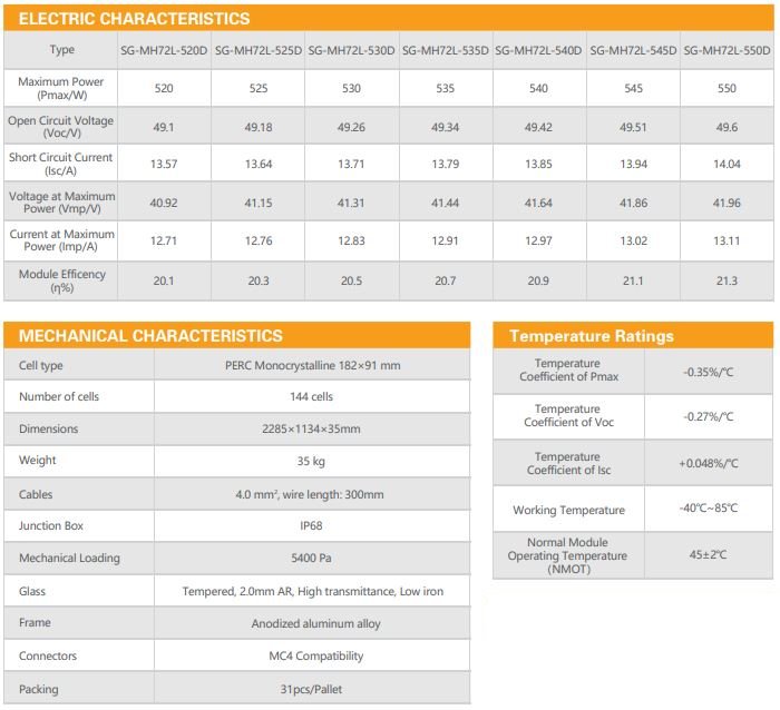 - SUNGO - Model Mars-G3 Series - 520-550W ...