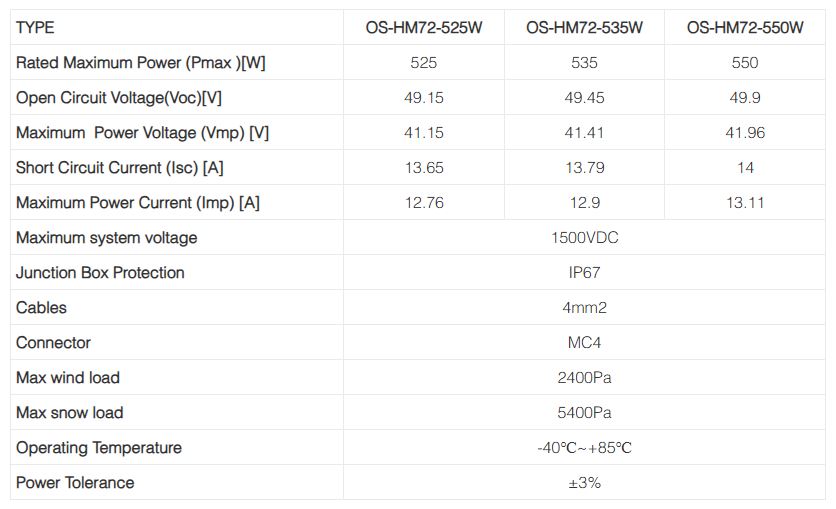 Oushang Solar - Model 144 Cell MONO -525W 535W 550W Solar Panel