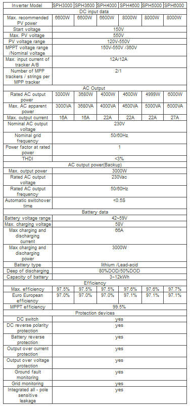 Growatt - Model SPF 3000-6000TL BL-UP PV -5kw 10kw PV Hybrid Inverter