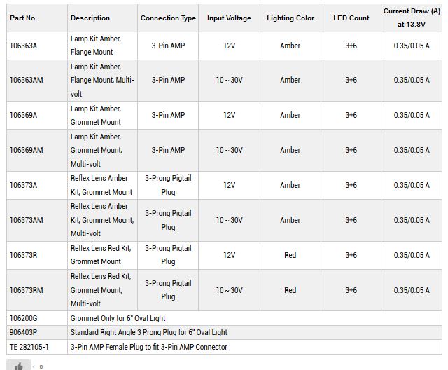 Innovative new designs of 6" Oval LED Mid Turn Lights, using (3) hi-power LEDs with alum heat sink and (6) SMD LEDs, super bright and long life span up to 50,000 hours. Engineered lens optics to comply with SAE requirements for lighting at different angles in wide range. 106373A/R series feature built-in reflex reflector and can also be used as Front or Rear side lamp. Mid Turn function, Hi Mode=Turn Signal, Low Mode=Side Marker, applicable for long vehicles. PC lens and housing welded and potted together on the back to ensure a permanent and weather proof seal. Available in both flange mount and grommet mount. Connections available in both built-in AMP 3-pin female socket and standard 3-prong connector. Meets DOT FMVSS 108/SAE J2039 (E E2) requirements on Hi Mode and P2P3 on low mode. Rated for 12V, tested to 13.8V. Also available in multi-voltage 10~30V operating range, or 24V by special order.
